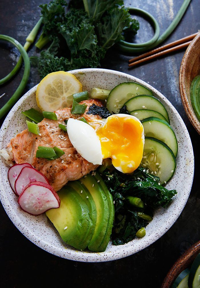 Delicious Grilled Salmon Bowl with Garlicky Kale Recipe